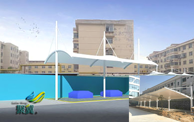 膜結構停車棚高強度薄膜材料的出現,加上張拉技能的運用,膜結構停車棚自行車棚的抗風雨能力是一般雨蓬之類不行比較的。有的棚采用的膜材料,可使用三、四十年。膜結構停車棚除了一般雨蓬不行比較的有用、經用、遮風擋雨的功用外,膜結構停車棚自行車棚還是一件藝術品,給人美的視覺享受。