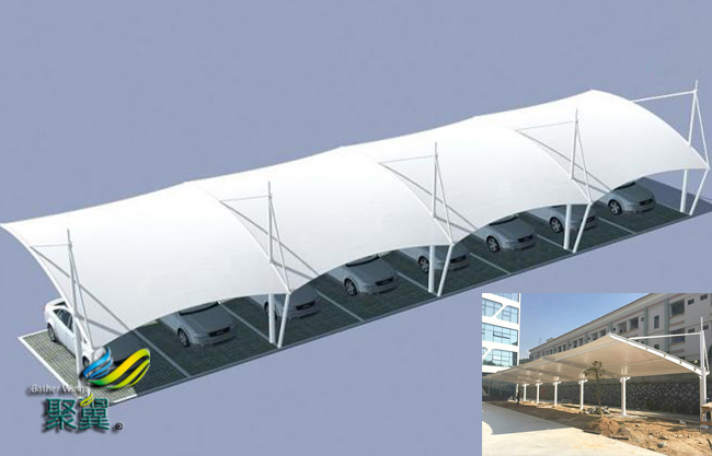 膜結構停車棚自行車棚具有藝術性,除了一般的雨篷具有不可比擬的使用價值,且比較耐用,具有遮風擋雨的效果,不僅如此,還給人以審美享受。膜結構停車棚本身具有柔軟的曲線效果,并且可以柔軟靈活,形狀豐富,使用起來非常方便。    膜結構停車棚自行車棚更堅固更耐用,因為采用相對高強度的薄膜,再加上目前使用的張緊技術,使得這個膜結構停車棚的防雨能力更強,使用30或40年都不成問題,尤其是遇到了劇烈的暴風雨氣候,也不會損壞。