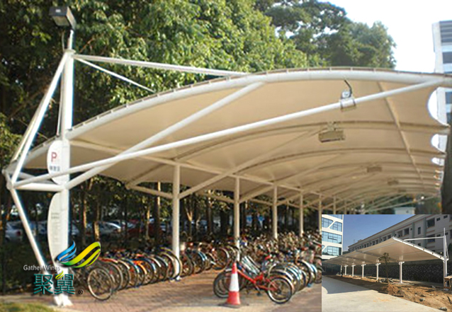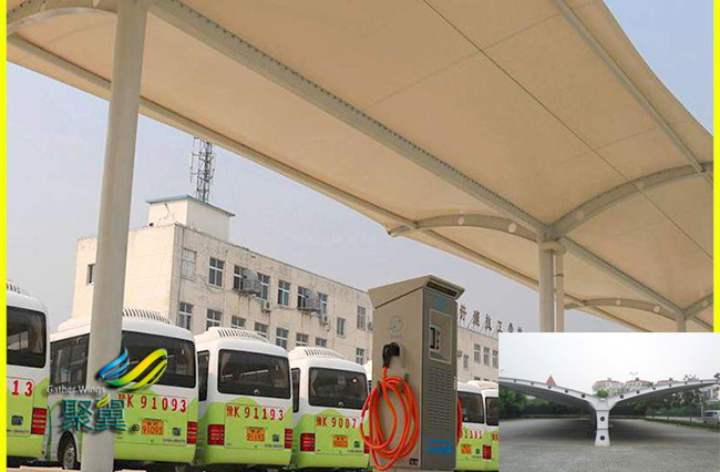 膜結構車棚靈活方便:安裝拆卸方便,場地選擇自由,可以在不同環境下搭建,這就滿足的各個地方對充電樁的要求,在使用新能源汽車使就不用怕在某些區域找不到充電的地方了。