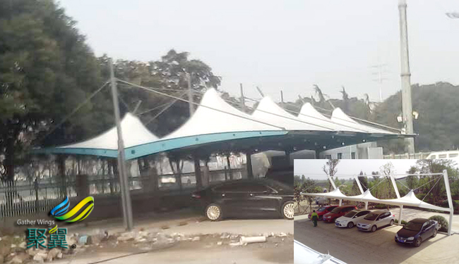 膜結構車棚耐用性:由于高強度的膜材出現,再加上張拉技術的應用,使膜結構車棚抵御風雨的能力是一般雨蓬不可比擬的。有的車棚采用永久性膜材,可使用三、四十年。特別是遇到劇烈的暴風雨天氣,膜結構車棚建筑巍然不動,毫發不損。