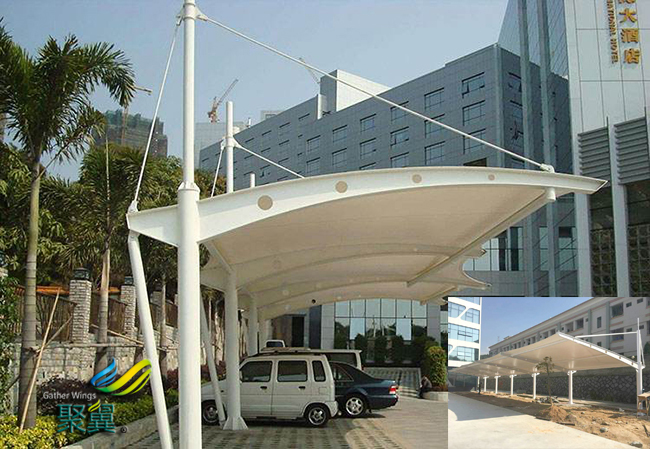 膜結構車棚耐用性好|膜結構半車棚張拉技術應用