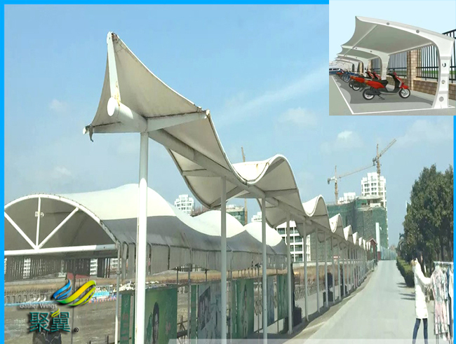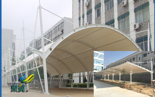 膜結構停車棚建筑采所用膜材是環保的,外層膜可以制作環保袋,不僅膜結構表面材料能回收利用,膜結構停車棚建筑本身也可以靈活拆分,從而實現回收再利用,膜材本身還具有良好的透光性,膜結構停車棚建筑空間白天可以得到自然的漫射光,從而節約大量用于照明的能源,膜結構停車棚應用大大推動著環保行來的發展。