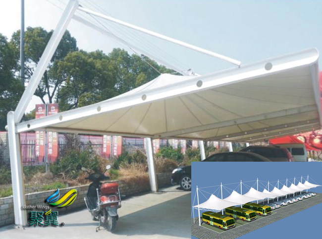 膜結構車棚是以鋼構或是集成材構成的棚頂骨架后,在其上方張拉膜材的構造形式,下部支撐結構安定性高,因膜結構車棚棚頂造型比較單純,開口部不易受限制,且膜結構車棚經濟效益高等特點,廣泛適用于任何大,小規模的空間。