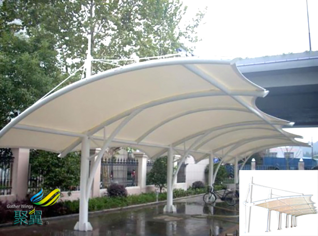 (1)膜結(jié)構(gòu)車棚雨篷面料應(yīng)確保尺寸恒定、不變形。