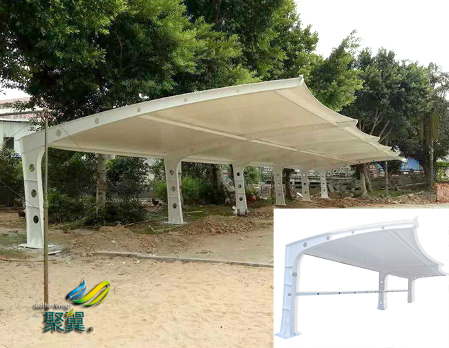 膜結(jié)構(gòu)車棚外形可豐富多樣,而且比較美觀可以成為一個城市的景觀,膜結(jié)構(gòu)車棚使用比較廣泛。而對膜結(jié)構(gòu)車棚,剛接觸這個詞時,以為主要是給自行車搭建的車棚,而后發(fā)現(xiàn)主要是給汽車搭建的膜結(jié)構(gòu)車棚。其實膜結(jié)構(gòu)車棚主要是規(guī)劃和建設(shè)現(xiàn)代化社會,從而使城市更加美觀和富有創(chuàng)意,目前來說膜結(jié)構(gòu)車棚主要普遍用在社區(qū)、學校、商業(yè)、體育館、工廠等等。