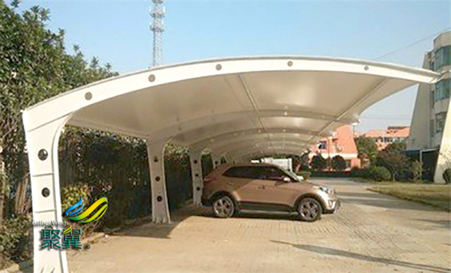 膜結構車棚的優點是強度高、耐用、防火難燃、高自潔性、不受紫外線影響,膜結構車棚使用壽命長,透光性好、熱量吸收少等特點,正是因為膜結構車棚膜材料這一發明具有這么多的特點,因而膜結構車棚這一建筑成為了我們身邊越來越不可或缺的建筑。