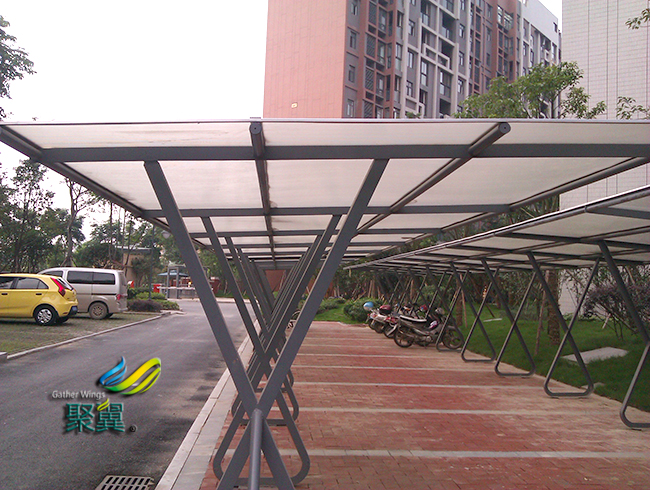 通常這些膜結構車棚自行車棚多選用膜構造的原料,膜結構車棚由多種強薄膜資料加載而成,并且使用加強膜結構車棚構件經過一些特定的規劃使得內部產生必定的張應力,歷來形成了一種特定的空間形狀,除了外型對比客觀之外,還可以承載必定的外界負荷。