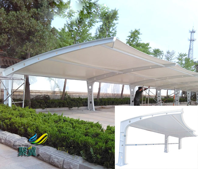 膜結構車棚在連接節點構造設計充分體現了膜結構設計的美學、專業性、膜結構車棚綜合性與精密技術性,膜結構車棚是膜結構設計的靈魂。