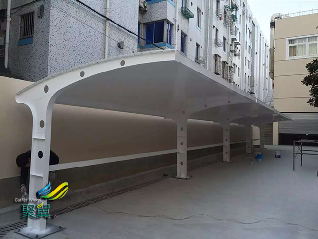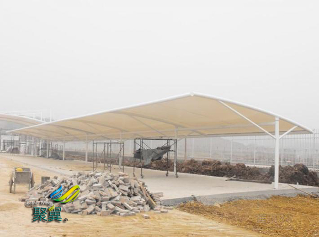 一般在校正膜結構車棚鋼柱的平面位時,應該分別從兩個不同的方向對安裝鑰柱結構的準線選擇經緯儀進行檢查.吊升膜結構車棚鋼結構之前嚴重控制安放的標高,確保膜結構車棚鋼柱結構底部的標高得到有效控制。