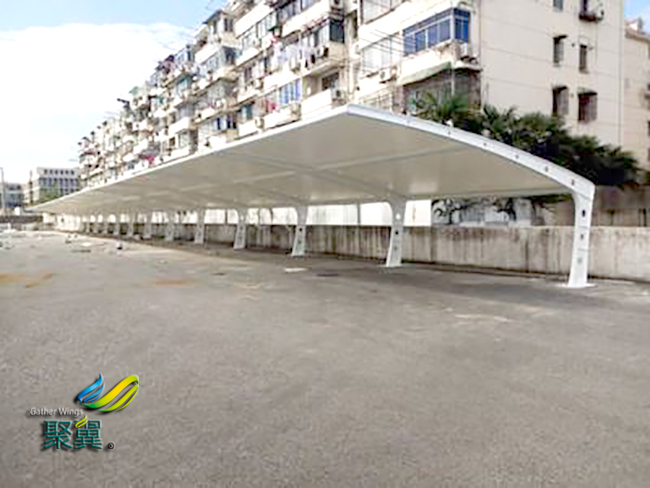 膜結構車棚不僅能夠擋住風沙雨對車輛的損壞、更可以遮擋住強烈的紫外線輻射,這樣對汽車無形中,就增加了保護性,延長了汽車的使用壽命!