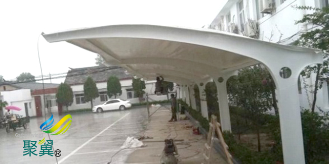 如果是采用的聚碳酸酯材料作為頂棚的話,膜結構車棚采用螺栓固定,這種產品的首要要求就是耐用穩固,膜結構車棚都是鋼構支撐柱,然后膜結構車棚上進行焊接等工藝加裝膜結構車棚膜材料頂棚。