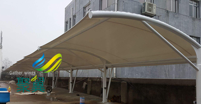膜結構車棚面料應有足夠的抗拉和抗撕裂強度,防止在惡劣氣候條件下出現被撕裂的危險。膜結構車棚面料應保證有良好的色固度。膜結構車棚面料表面應具有一定的抗污染性能,且易清洗,維護簡單方便。