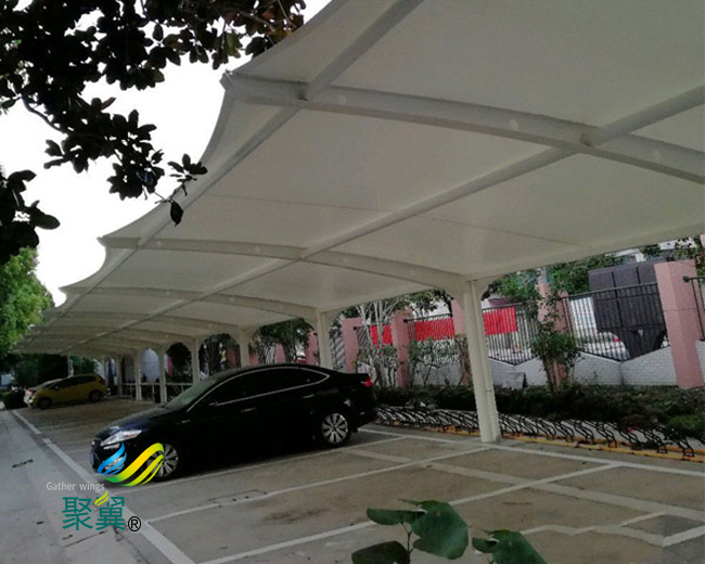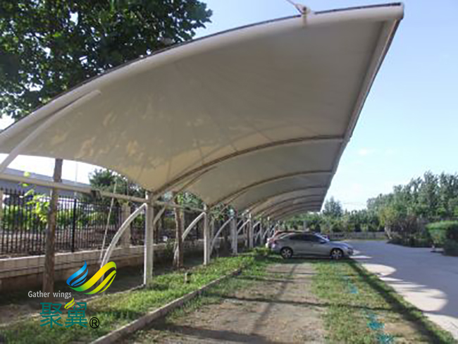 膜結構車棚材料輕盈柔韌,膜結構車棚不是剛性的,比傳統建筑結構的輕得多,具有良好的穩定性,不同的膜結構車棚膜材的柔性也不同,有的膜結構車棚柔韌性是非常好的,不會因為折疊而損壞,是可展開結構的基礎和前提。