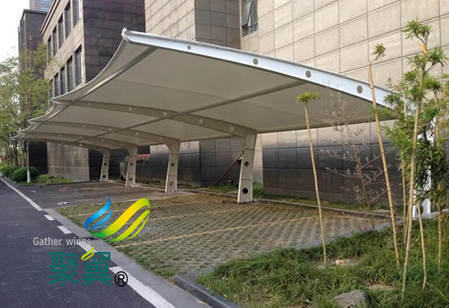 膜結構車棚膜片拼接|膜結構車棚色感好