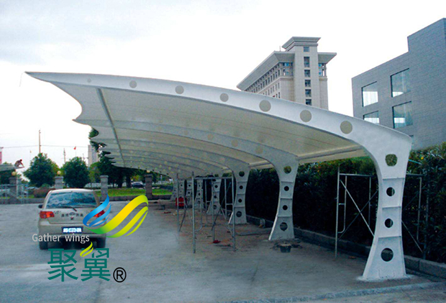 膜結構車棚拉伸時應注意間歇張力的順序和值。控制張力速度,根據材料特性確定過張力值。