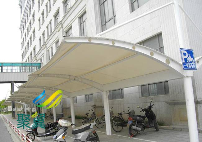 膜結構車棚藝術性:除了一般雨蓬不可比擬的實用、耐用、遮風擋雨的功能外,膜結構車棚雨蓬更是一座雕塑,一件藝術品,給人美的視覺享受。