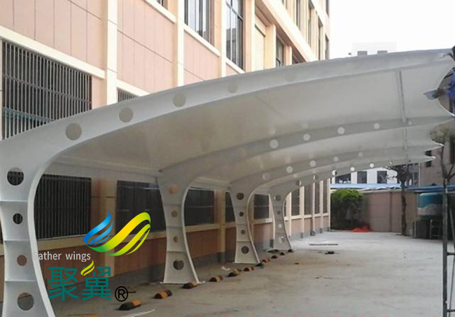 是為了改善膜結構車棚Pvc的自潔性,一般的是在膜結構車棚Pvc的表面的涂敷丙烯酸樹脂或含氟樹脂,或者在膜結構車棚PVc表面粘貼含氟薄膜。