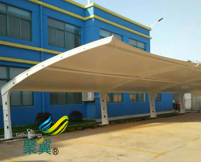 膜結構車棚是通過變形是來適應外荷載,在此過程中荷載作用方向上的膜結構車棚膜面曲率半徑會減小,直至能更有效抵抗該荷載。