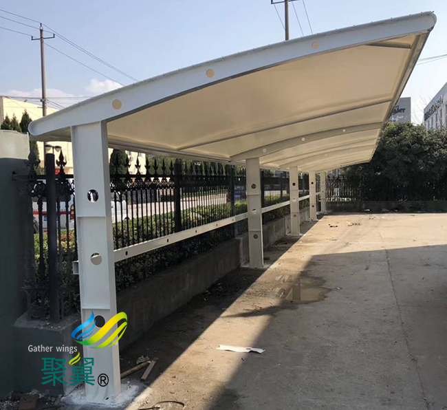 膜結構車棚是一種公用建筑物,這種產品的首要要求就是耐用穩固,膜結構車棚都是鋼構支撐柱,然后其上進行焊接等工藝加裝膜材料頂棚。