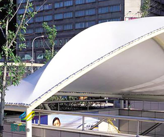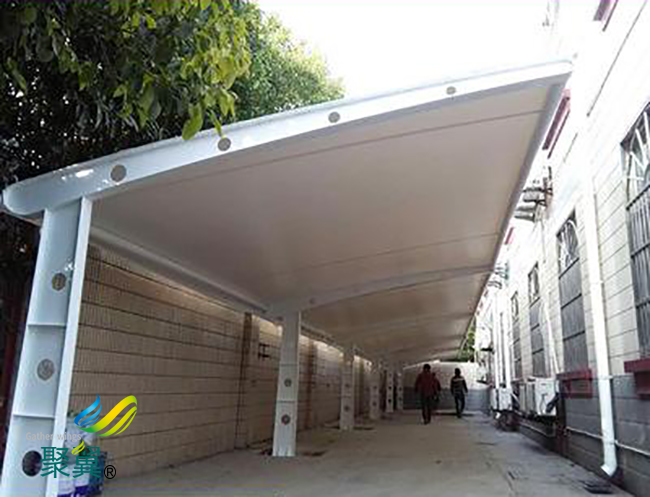 膜結構車棚跨度空間大指出其因為自重輕,膜結構車棚修建能夠不需要內部支撐面大跨度掩蓋空間,這使大家能夠列靈活計和運用修建空間,描繪出愈加有構思的修建。