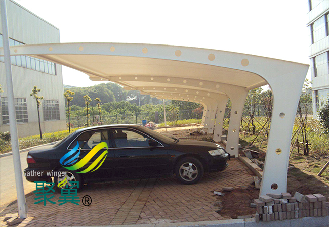 膜結(jié)構(gòu)車棚選用進口PVDF膜材料配鋼結(jié)構(gòu)骨架,表面處理采用進口船用底漆,炳烯酸聚氨酯面漆藝術(shù)性:除了一般遮陽棚不可比擬的實用、耐用、遮風(fēng)擋雨的功能外,膜結(jié)構(gòu)車棚更是一座雕塑,一件藝術(shù)品,給人美的視覺享受。