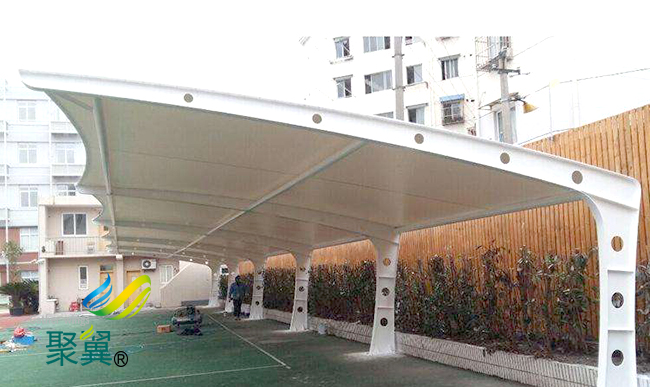 膜結構車棚,任何附加的支撐和修飾都膜結構車棚結構本身就是造型;換句話說,不符合膜結構車棚結構的造型是不可能的。膜結構車棚結構為了減小結構的變形就必須增加結構的抗力;而膜結構車棚是通過改變形狀來分散荷載,從而獲得最小內力增長的。