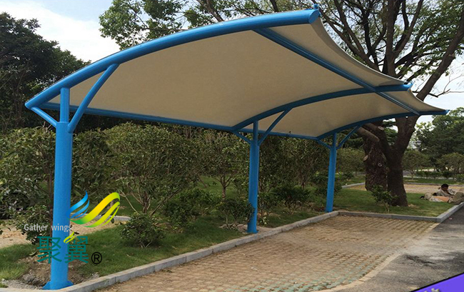 膜結構車棚空間一般都對比高,跨度對比大,發作火災后煙氣延伸時,勘探器舉動與在一般膜結構車棚內舉動對比會慢一些,且咱們一般運用的主動噴水救活體系在這種修建中安排對比艱難,更不能有用發揚救活效果,彌補膜結構車棚膜修建這種大空間修建物火災一般會遇到很多的艱難。 首先在膜結構車棚安裝過程中要注意膜結構停車棚內部采用Φ38鍍鋅圓管與車棚框架焊接,加強棚頂部強度,可讓膜結構車棚棚內感覺寬敞明亮,停靠車輛輕松方便,完全符合膜結構車棚制作要求規范。