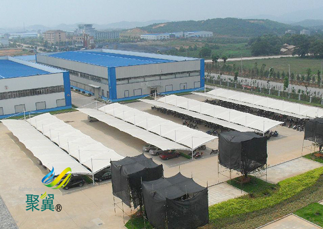 膜結(jié)構(gòu)車棚膜構(gòu)造的車棚不僅使用的壽命長,并且整體的外面也好體驗的大方、簡介、總體來說十分的美觀,能夠過得更好的用戶體驗。