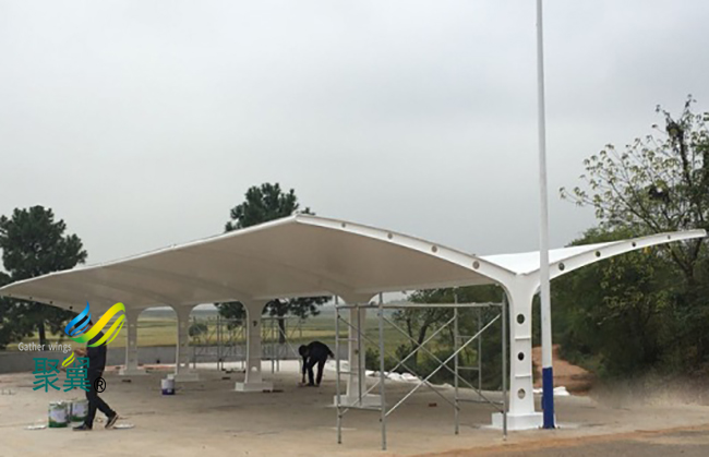 膜結(jié)構(gòu)車棚的工期是很短的,在拆裝的時(shí)候也是很方便的。它的結(jié)構(gòu)形式是很簡(jiǎn)潔的,設(shè)計(jì)也是很專業(yè)的,整個(gè)工藝流程也會(huì)很完善,這樣膜結(jié)構(gòu)車棚在制作的過(guò)程中時(shí)間就會(huì)大大縮短,膜結(jié)構(gòu)車棚所采用的是可以調(diào)節(jié)和裝卸的節(jié)點(diǎn)形式。