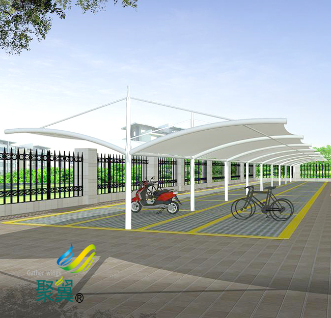 膜結構車棚造型優美,作為一種21世紀*具現代感的建筑形式,它打破了其他傳統建筑形式多直線的建筑風格,以期獨有的優美曲面造型,膜結構車棚簡潔、明快、柔美是建筑與藝術的完美結合。給人很強的視覺沖擊力,而且膜結構車棚柔性結構給建筑設計師提供了更大的想象和創造空間。