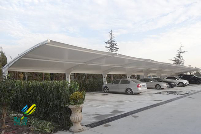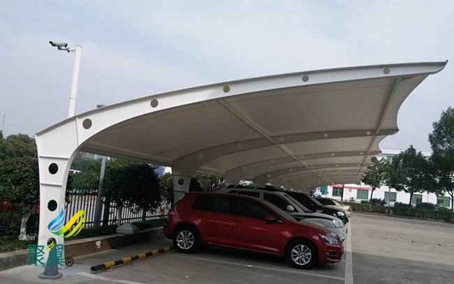 膜結構車棚工期短,膜建筑工程中所有加工和制作均在工廠內完成,可減少現   場施工時間,避免出現施工交叉,相對傳統膜結構車棚建筑工程工期較短。