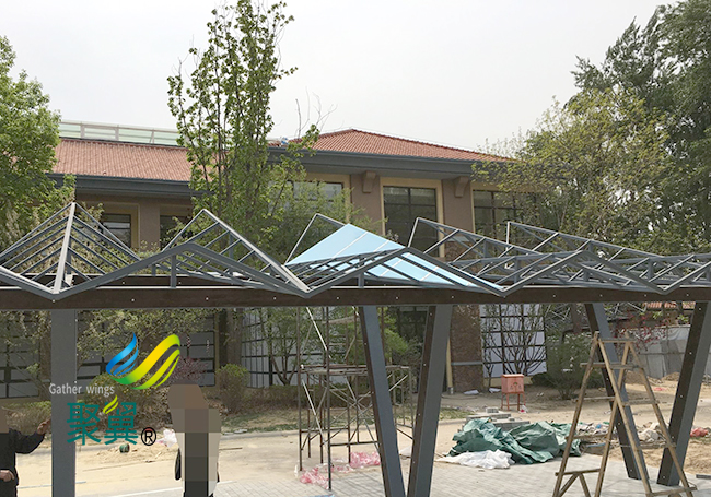 在膜結構車棚安裝相鄰工程或下道工序時,必須珍愛好膜結構停車棚已完成部分,防止遭到損壞,假如不可做珍愛措施,肯定不可在膜材附近2.1米范圍處進行切削、焊接作業。