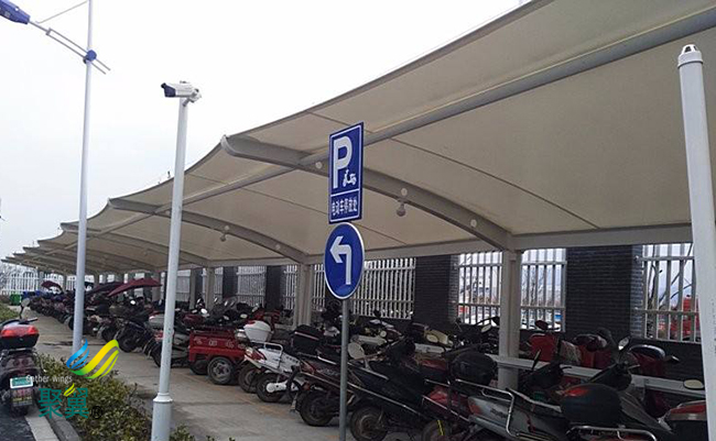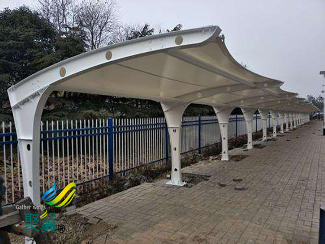 膜結(jié)構(gòu)車棚藝術(shù)性。膜結(jié)構(gòu)突破了傳統(tǒng)的建筑結(jié)構(gòu)類型,以造型學(xué)、色彩學(xué)為依托,可結(jié)合自然條件, 膜結(jié)構(gòu)車棚充分發(fā)揮建筑師的想象力,根據(jù)創(chuàng)意建造出傳統(tǒng)建筑難以實(shí)現(xiàn)的曲線及各種造型,且色彩豐富,富有時(shí)代氣息, 膜結(jié)構(gòu)車棚體現(xiàn)結(jié)構(gòu)構(gòu)件受力之美。配合燈光易形成夜景,給人以現(xiàn)代美的享受。