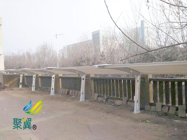 膜結(jié)構(gòu)車棚自潔性。膜結(jié)構(gòu)車棚膜建筑中采用具有防護涂層的膜材,本身不發(fā)黏,落到膜結(jié)構(gòu)車棚膜材表面的灰塵可以靠雨水的自然沖洗而達(dá)到良好的自潔效果,同時保證建筑的使用壽命。