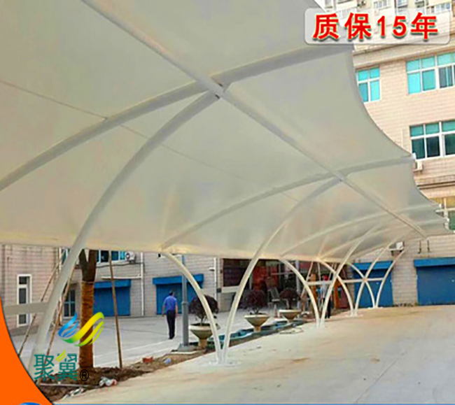 由于膜結構車棚是膜構造的停車棚,它具有良好的自潔性、隔熱性和耐久性,還有外型新穎、自重輕等的優點,所以被普遍的應用在各類休閑小品和輕型大跨度無柱空間以及輕型屋蓋建筑結構上。膜結構車棚展示了一種力的均衡美感,膜結構車棚的膜構造是一種張力結構,在一定的張力作用下有一定的外形和剛度,膜結構車棚是一種受力*為合理的結構方式。