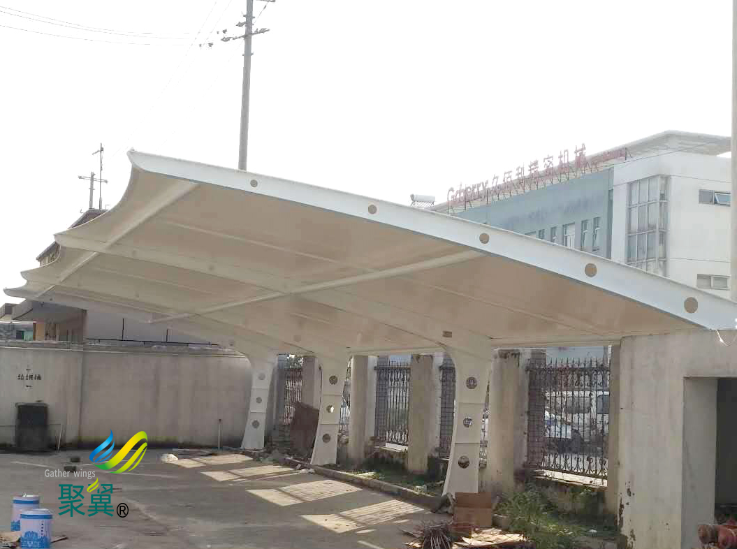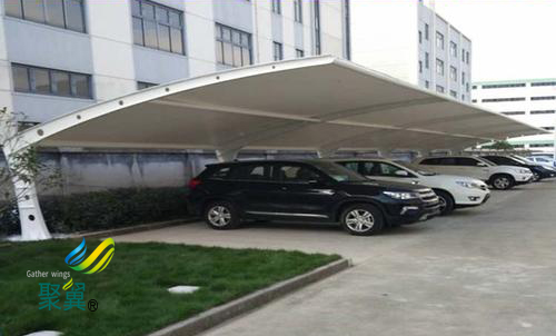 膜結構車棚立柱底腳選用10mm厚鋼板與預埋件結實焊接,在裝置泊車棚的時分將預埋件用混凝土澆筑后,用螺栓與立銜接,抗風系數高,添加 膜結構車棚全體結實程度,能反抗12級以上颶風來襲,膜結構車棚為咱們的出行帶來了便利,但許多公共場所建造的車棚設備很少,可以說簡直都是沒有,這也給咱們的車輛停放帶來極大的不便利。