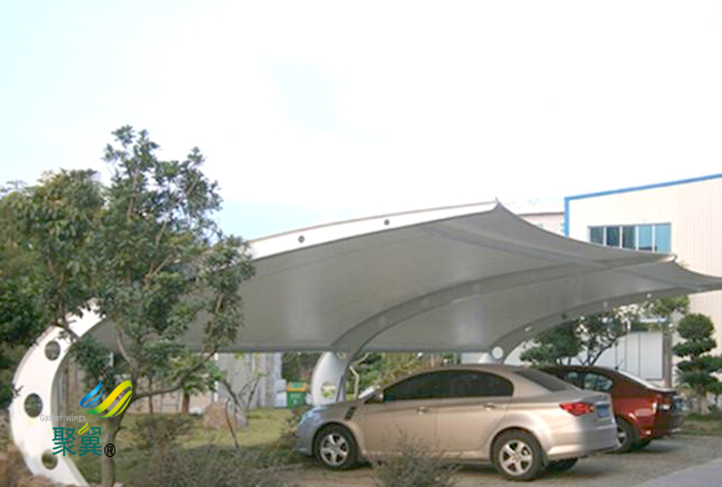 膜結(jié)構(gòu)車棚是一種高強(qiáng)薄膜和鋼結(jié)構(gòu)、拉索在經(jīng)過一定的方式組合后而成的一種棚,這種分離的方式使膜結(jié)構(gòu)車棚的內(nèi)部產(chǎn)生了一定的預(yù)張應(yīng)力構(gòu)成了空間的外形,這也是作掩蓋結(jié)構(gòu)并承受一定外荷載的空間結(jié)構(gòu)的方式構(gòu)造。