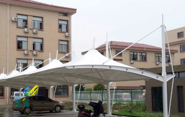 膜結構車棚由于其材料的特殊,拉伸和延展性很強,可以塑造出很多具有現代化和藝術性的建筑,將膜結構車棚自行車棚搭配組合,便成了一件藝術品,給人美的視覺享受,膜結構車棚豐富的新穎造型,潔白無瑕,讓人眼前一亮,回味悠長。 膜結構車棚耐用:公共自行車棚屬于棚外基礎建設,風吹雨打是避免不了的。而膜結構車棚膜材料具有高強度的特點,再加上張拉技術的應用,根據力學原因構造外圍,使得膜結構車棚自行車車棚的支撐力和強度遠遠高于其他材料。