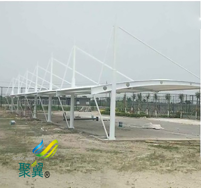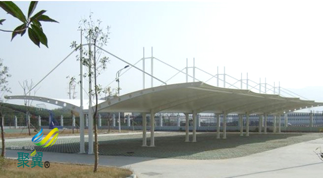 目前市場上有很多膜結構車棚,這些停車棚大致也分為鋼構造和膜構造停車棚。不同材質的膜結構車棚的性能也不同。