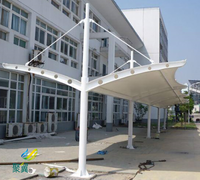 膜結構車棚膜材料、鋼材等產品的質量要有保證書。要考慮膜結構停車棚的節點方案對拉鎖、膜結構車棚膜材料發生的影響,施加預張力的辦法、方案不可以有過失,膜結構車棚膜單元設備和施加張力進程的質量查驗記載。