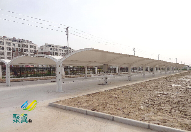 膜結構車棚膜構造的支架構造是由高強度構架產生內部的伸拉才能,構成一定的外形,作為掩蓋構造,膜構造膜結構車棚能滿足車輛車風擋雨需求,也能有效的維護車輛起到減緩車輛老化速度的功用。
