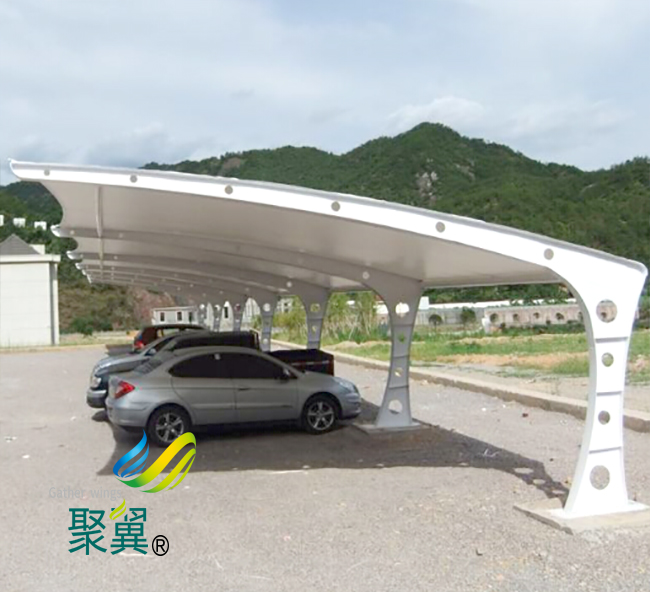 膜結構車棚在中國的發展張拉膜結構建筑作為一種新型的建筑形式,因膜結構車棚膜材具有重量輕、造型富于變化、透光、隔熱等特性而被廣大的建筑師所喜愛。