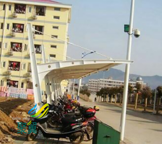 膜結構車棚打破了純直線建筑風格的模式,以膜結構車棚獨有的優美曲面造型,簡潔、明快、剛與柔、力與美的完美組合,膜結構車棚同時給建筑設計師提供了*大的想象和創造空間。