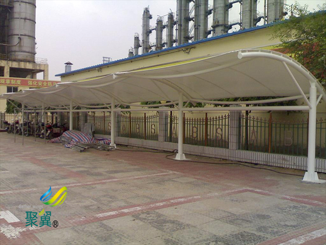 膜結構車棚內部采用38鍍鋅圓管與車棚框架焊接,加強膜結構車棚棚頂部強度,膜結構車棚可讓棚內感覺寬敞明亮,停靠車輛輕松方便,完全符合膜結構車棚制作要求規(guī)范。