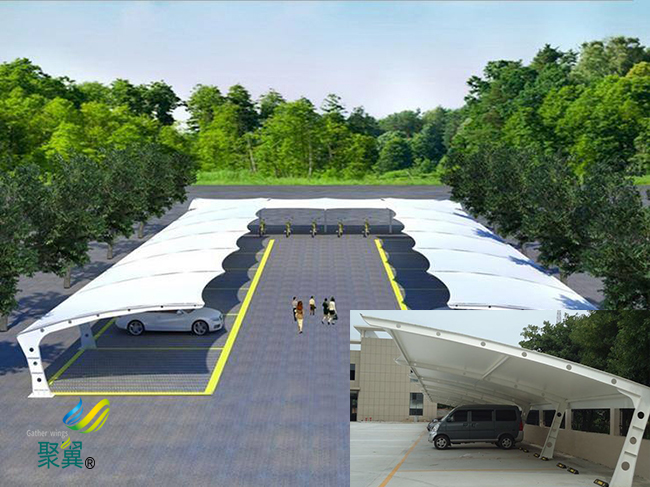 膜結(jié)構(gòu)車棚特點,膜結(jié)構(gòu)車棚大跨度空間,大家說起膜結(jié)構(gòu)車棚應(yīng)該都是很熟悉的,而膜結(jié)構(gòu)車棚就是由多種高強(qiáng)薄膜材料及加強(qiáng)構(gòu)件通過一定方式使其內(nèi)部產(chǎn)生一定的預(yù)張應(yīng)力以形成某種空間形狀。