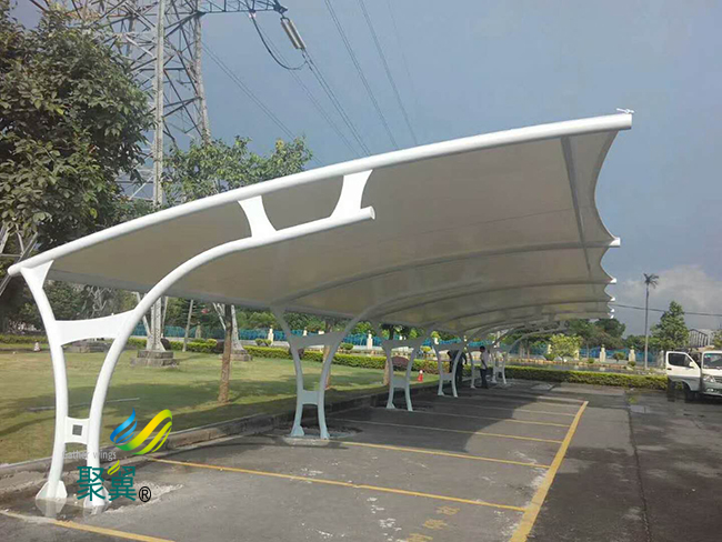 呼倫貝爾市膜結構車棚藝術性:除了一般雨蓬不可比擬的實用、耐用、遮風擋雨的功能外,膜結構雨蓬更是一座雕塑,一件藝術品,給人美的視覺享受。其柔美,其曲線,其剛柔并濟,其豐富造型,其潔白無瑕,讓人眼前一亮,回味悠長。