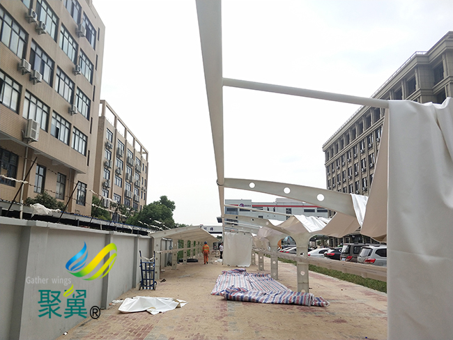 膜結構車棚結構安全和壽命的修補、維護作業。膜結構車棚和支承索結構,長時間運用時產生的結構的改變、不順滑等,必須及時修補,各種膜結構車棚膜材在膜結構車棚自身有限運用年限里,屆時有必要及時替換均屬。