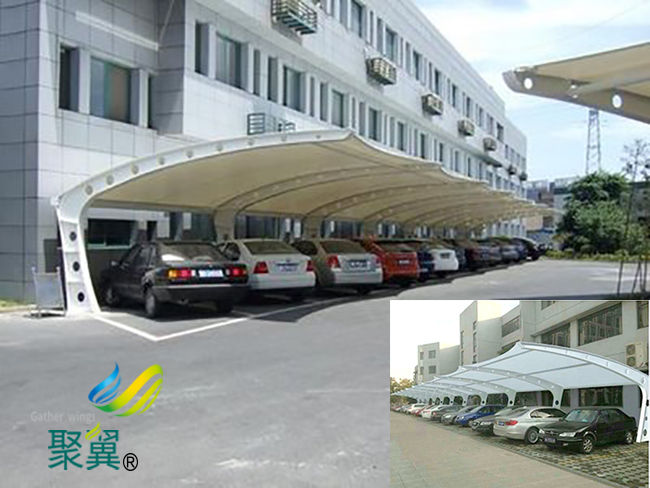 膜結構車棚膜材料具有高強度的特點,再加上張拉技術的應用,根據力學原因構造外圍,使得膜結構車棚自行車車棚的支撐力和強度遠遠高于其他材料。