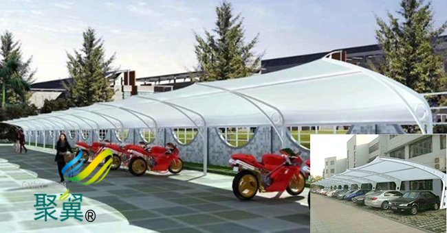 膜結構車棚與傳統的停車棚相比,外觀更加美觀,膜結構車棚受歡迎的原因不僅是新的停車棚源于中國汽車的激蕩,而且膜結構車棚材料的藝術感也使其能夠取代傳統停車棚的地位。