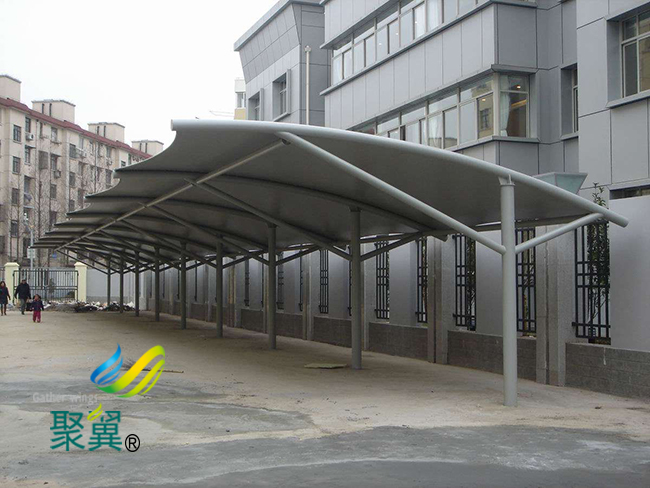 杭州市膜結構車棚經濟性,對于同等大小的建筑,如果采用膜結構,杭州市膜結構車棚成本只相當于傳統建筑的二分之一或更少,特別是杭州市膜結構車棚建筑短期應用的大跨度建筑時,就更為經濟。